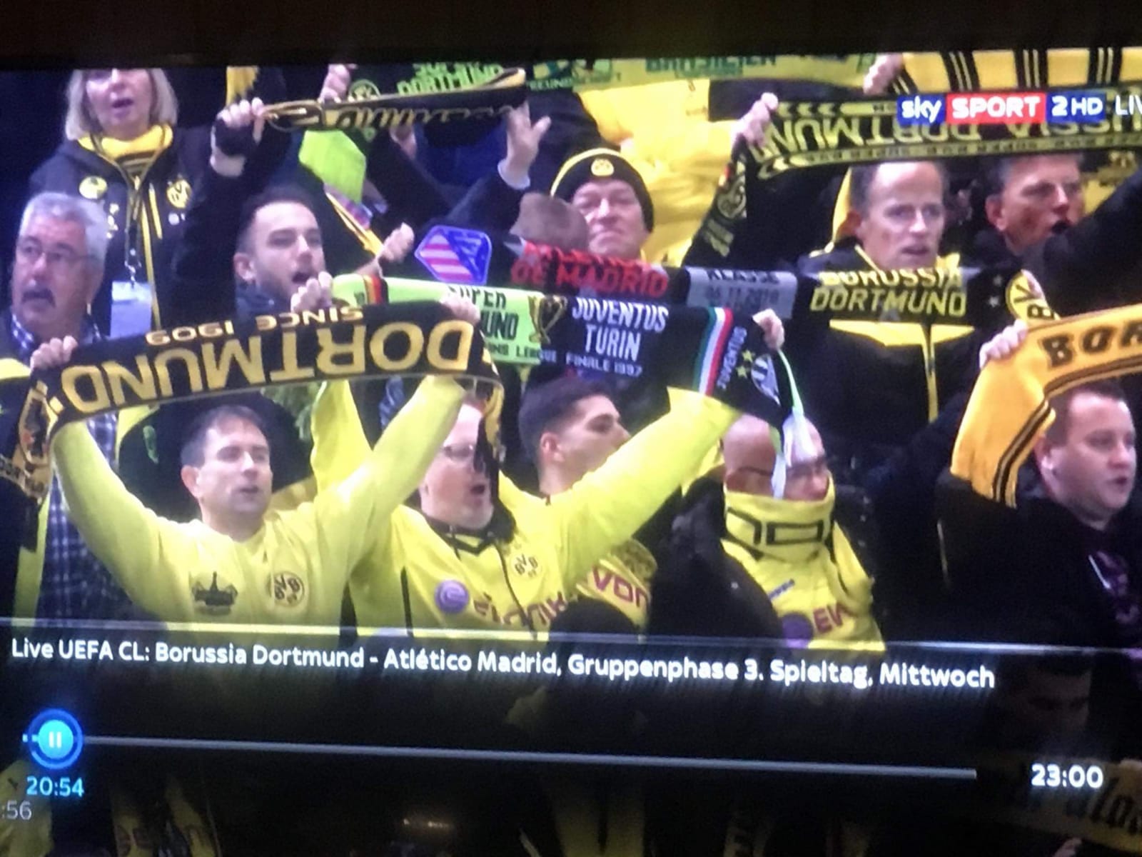 Gestern Abend sahen unsere zahlreich angereisten Mitglieder im Stadion die wohl beste Mannschaftsleistung des BVB seit dem 4:1-Halbfinal-Sieg in der Champions League gegen Real Madrid am 24.04.2013. Mit einem vorher niemals für möglich gehaltenen 4:0 besiegte Schwarzgelb mit Atletico Madrid eins der besten Teams in ganz Europa! Die Treffer erzielten Axel Witsel kurz vor der Pause sowie Jadon Sancho und zweimal Raphael Guerreiro in Hälfte 2. Der Einzug ins Achtelfinale ist damit in greifbarer Nähe.